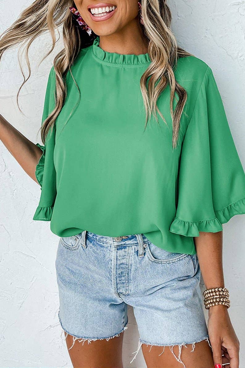 This blouse is a versatile addition to any wardrobe. Made from high-quality materials, it features a solid color and flattering half sleeves that provide a sleek and professional look. With its timeless design, this blouse can be dressed up or down for any occasion, making it a must-have for any fashion-forward individual. 100% Polyester